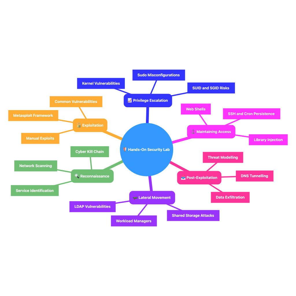 The target audience for this course consists of software developers, systems engineers, system architects and other IT professionals who wish to expand their knowledge of cyber security with a focus on penetration testing and system security. The course is aimed at participants who already have a basic knowledge of Linux and would like to deepen their understanding of security aspects. No in-depth knowledge of the topics and labs covered is necessary, as the necessary theory will be worked through together in advance.